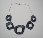 Sieraden van papier met als toplaag een grafische techniek.