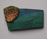 2016broche basis van papier met stukje kermiek bewerkt met imitatie bladgoud